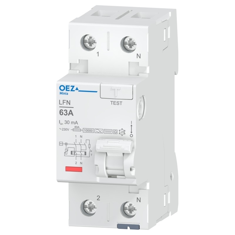 Proudový chránič LFN-63-2-030F-G In 63 A, Ue AC 230 V, Idn 30 mA, 2pól, Inc 10 kA, typ F, provedení G OEZ:46409