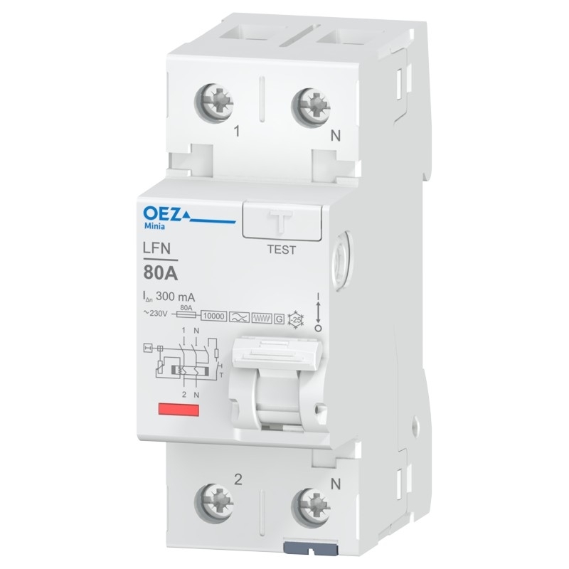 Proudový chránič LFN-80-2-300F-G In 80 A, Ue AC 230 V, Idn 300 mA, 2pól, Inc 10 kA, typ F, provedení G OEZ:46414