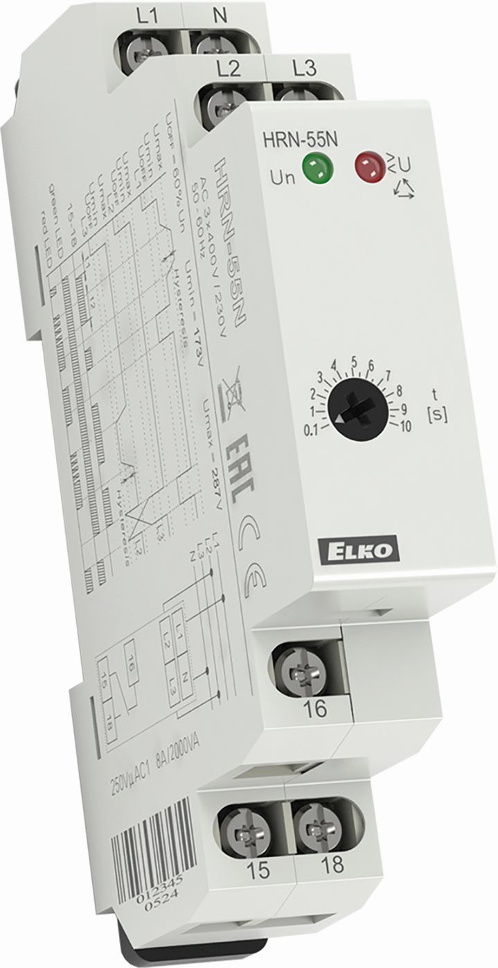 HRN-55N: napájeno z L1-N, tzn. že relé hlídá i po přerušení nulového vodiče