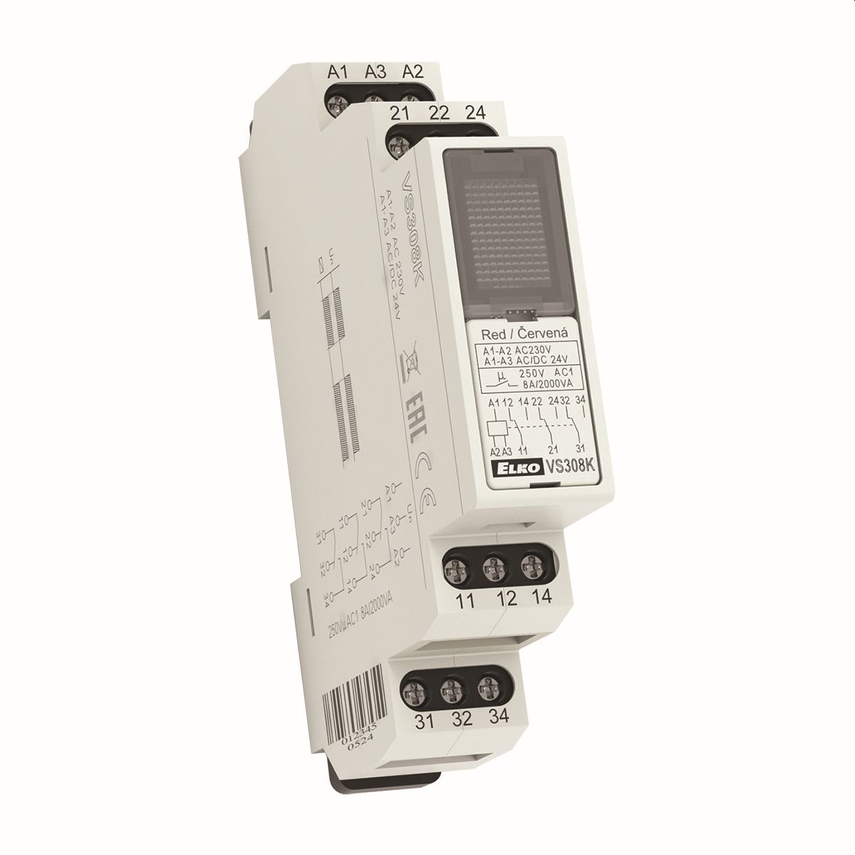 VS308K, VS308U: 3x přepínací 8 A (AgNi)