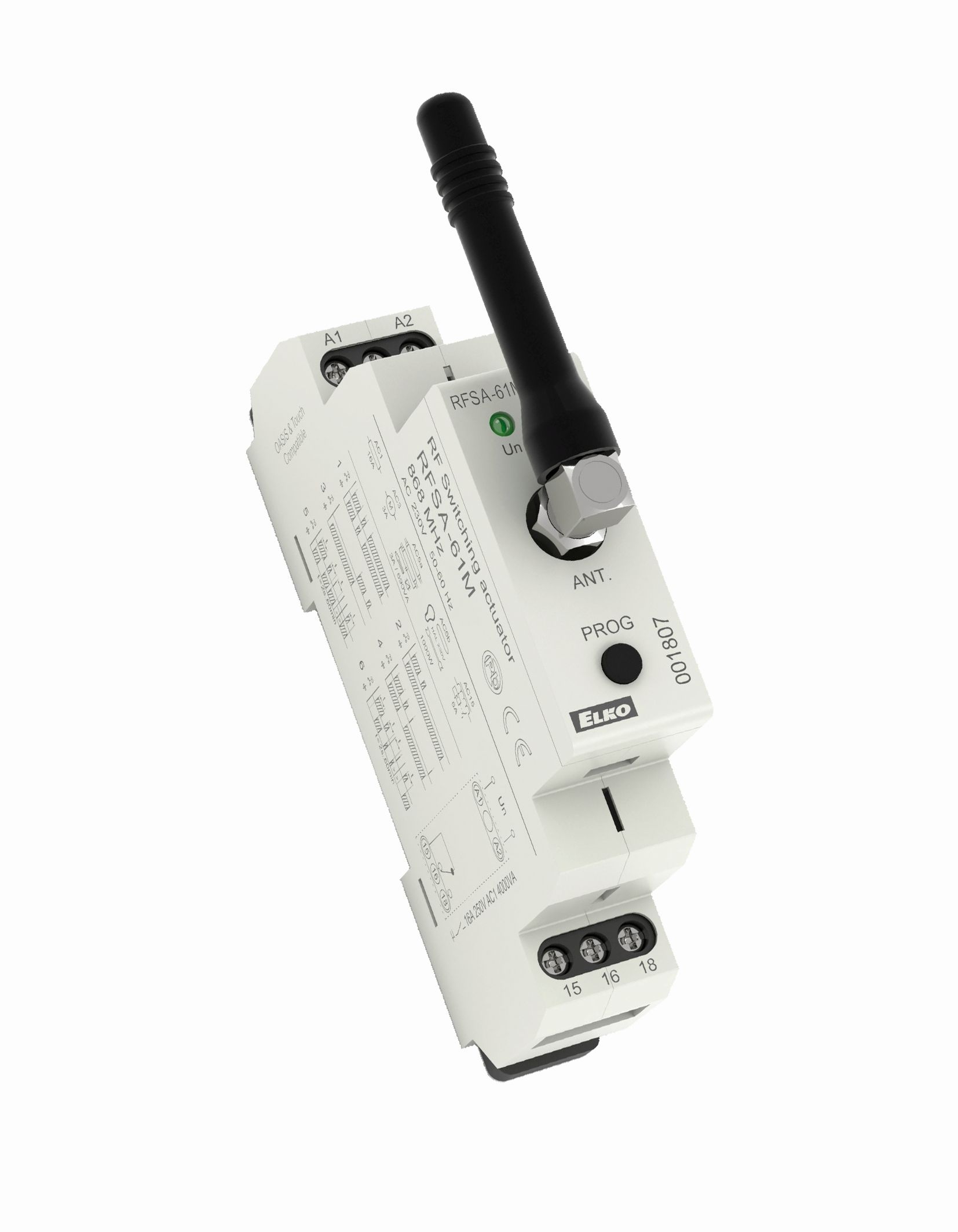 RFSA-61M: spínací prvek s 1 výstupním kontaktem 16 A slouží k ovládání spotřebičů, zásuvek nebo světel.