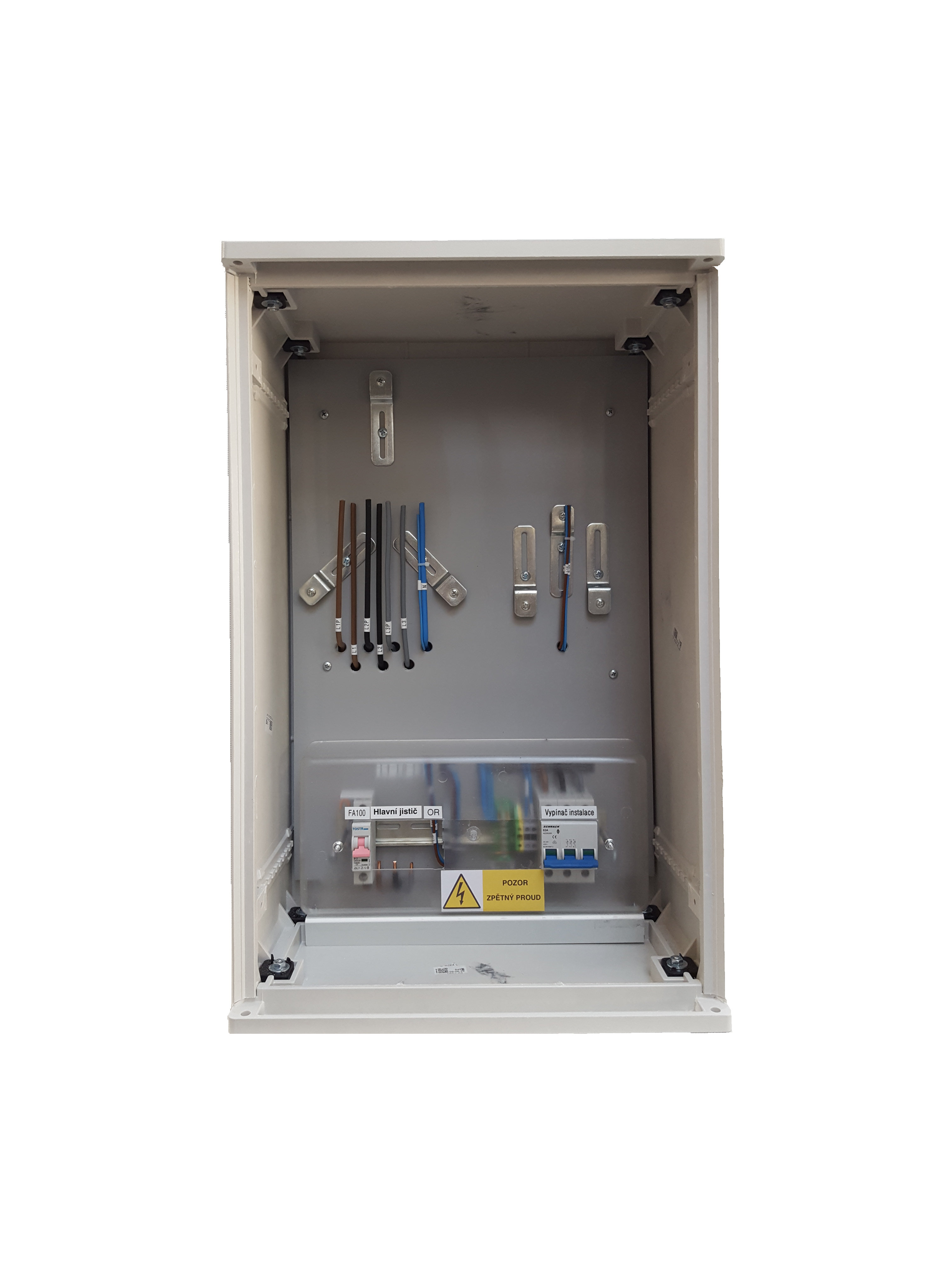 - skříně jsou vyrobeny v celoplastovém provedení z termosetu z SMC-prepreg materiálu, který je odolný proti povětrnostním vlivům, vodě a UV zářením