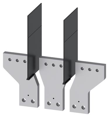 Připojovací sada 3VA9603-0QC00 přední přívody - rozšířené, Cu/Al pasy / kabelová oka / flexibary, max. šířka pasů a kabelových ok 80 mm, max. tloušťka pasů a kabelových ok 5 mm, 3 ks, izolační přepážky 2 ks, pro 3VA15, 3VA25 3VA9603-0QC00