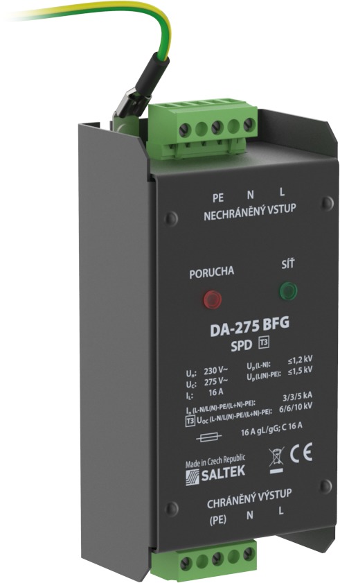 Saltek DA-275 BFG přepěťová ochrana s vf filtrem, instalace těsně před chráněné zařízení, s uzemňovací svorkou (třída I), 16 A