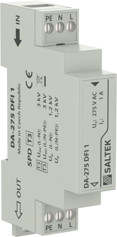 Saltek DA-275 DFI 1 přepěťová ochrana s vf filtrem, instalace těsně před chráněné zařízení, s přerušením napájení, 1 A