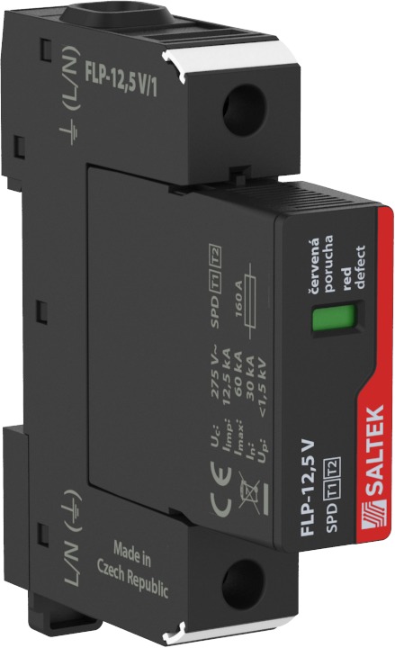 Saltek FLP-12,5 V/1 svodič bleskových proudů a přepětí, vhodné pro systémy TN a TT, instalace na vstupu do budovy, 60 kA(8/20), 12,5 kA (10/350)