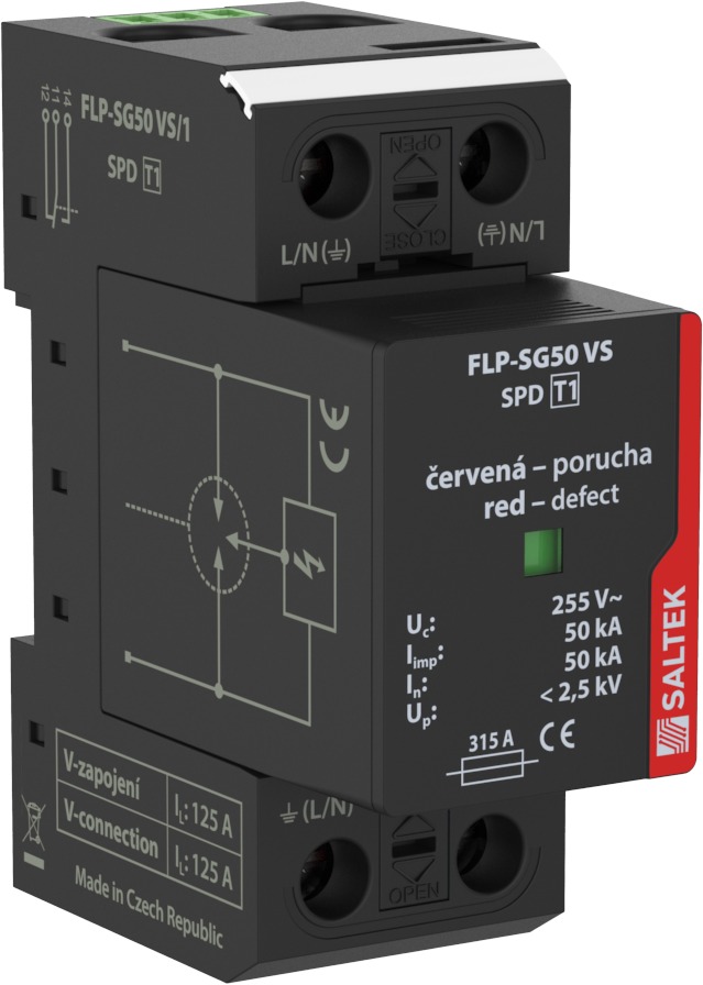 Saltek FLP-SG50 VS/1 Svodič bleskových proudů, vhodný pro systémy TN a TT, 50 kA (10/350), ochranná úroveň 2,5 kV, výměnné moduly, dálková signalizace