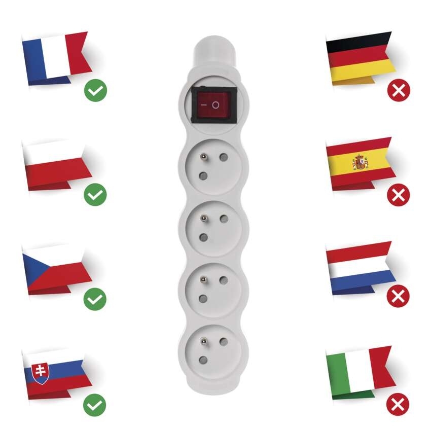Samostatná 4 zásuvka s vypínačem, bílá == barva: bílá|dálkový ovladač: ne|dětské clonky: ano|dosah signálu: neuvádí se|easy learning: ne|krytí: IP20|materiál: plast|max. zátěž: 3 680 W|možnost ovládání: ne|napětí/proud: 250 V~/16 A max.|počet pólů: neuvádí se|počet zásuvek: 4× 2P + PE|pozice ochranného kontaktu: neuvádí se|přenosoná frekvence: ne|prodejní obal: 1 ks, závěs|produkt: zásuvkové pole|typ: FRENCH|venkovní použití: ne|vypínač: ano