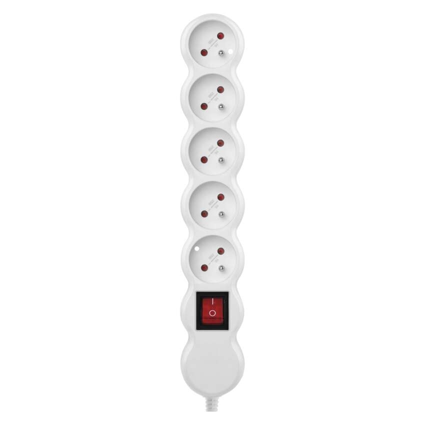 Samostatná 5 zásuvka s vypínačem, bílá == barva: bílá|dálkový ovladač: ne|dětské clonky: ano|dosah signálu: neuvádí se|easy learning: ne|krytí: IP20|materiál: plast|max. zátěž: neuvádí se|možnost ovládání: ne|napětí/proud: 250 V~/16 A max.|počet pólů: neuvádí se|počet zásuvek: 5× 2P + PE|pozice ochranného kontaktu: neuvádí se|přenosoná frekvence: ne|prodejní obal: 1 ks, závěs|produkt: zásuvkové pole – připojení pomocí svorkovnice|typ: FRENCH|venkovní použití: ne|vypínač: ano