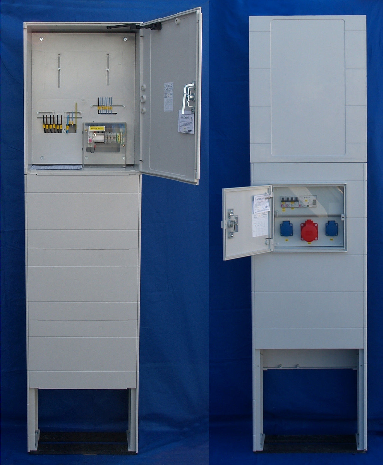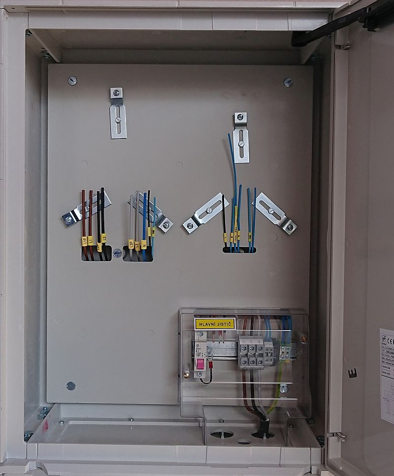 elektroměrová skříň je umístěna zepředu a zásuvková skříň zezadu