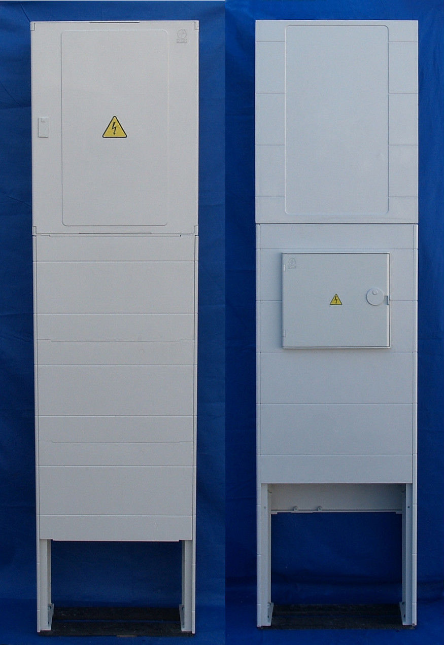 Sestava v pilíři elektroměrového rozvaděče ER212 s HDO pro přímé měření do 63A s vypínačem a s přípravou na FV a vestavěnou zásuvkovou skříní