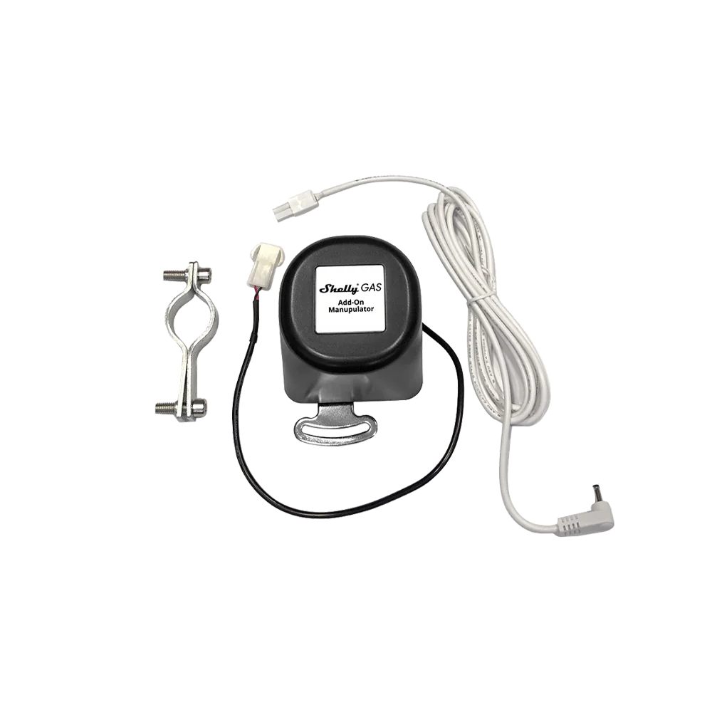Shelly GAS Add-on Manipulator je příslušenství navržené pro použití se senzorem Shelly GAS, které umožňuje automatické uzavření přívodu plynu v případě detekce úniku. Zařízení zajišťuje zvýšenou bezpečnost domácnosti tím, že okamžitě reaguje na nebezpečné situace spojené s únikem plynu.