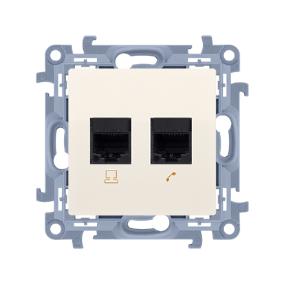 Simon 10 C6T.01/41 Zásuvka datová RJ45 kat. 6 + telefonní RJ11 (přístroj s krytem) krémová