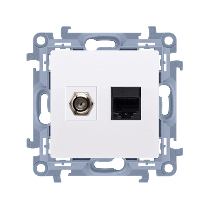 Simon 10 CASFRJ455.01/11 Zásuvka anténní typ „F” + datová RJ45 kat. 5e (přístroj s krytem) bílá