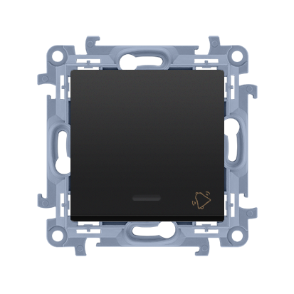 Simon 10 CD1L.01/49 Ovladač zapínací (přístroj s krytem), s piktogramem "zvonek", s orientačním LED podsvětlením, řazení 1/0So, 10 A / 250 V~, šroubové svorky černá matná