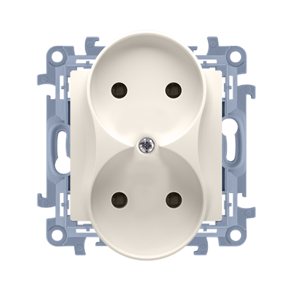 Simon 10 CG2M.01/41 Zásuvka silová 2 násobná (přístroj s krytem), bez uzemnění, šroubové svorky krémová