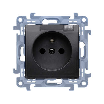 Simon 10 CGZ1BCUZ.01/49A Zásuvka 1 násobná (přístroj s krytem), s uzemněním, IP44, bez těsnění, se clonkami, průhledné víčko, bezšroubové svorky černá matná