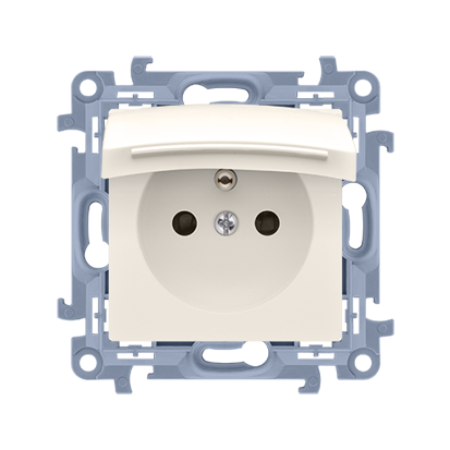 Simon 10 CGZ1BCZ.01/41 Zásuvka 1 násobná (přístroj s krytem), s uzemněním, IP44, s těsněním, se clonkami, víčko v barvě krytu, 16 A / 250 V~, bězšroubové svorky krémová