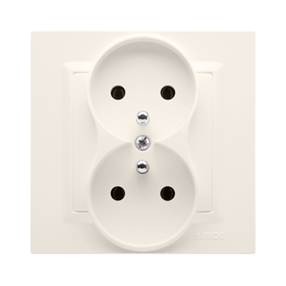 Simon 10 CGZ2/41 Zásuvka 2 násobná (přístroj s krytem), s uzemněním, kolíky naproti sobě, šroubové svorky krémová