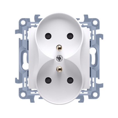 Simon 10 CGZ2MZ.01/11 Zásuvka silová 2 násobná (přístroj s krytem), s uzemněním, se clonkami, šroubové svorky bílá