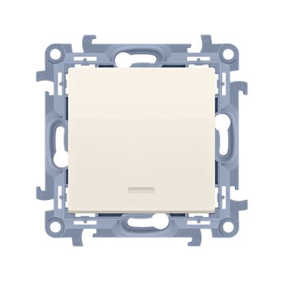 Simon 10 CP1L.01/41 Ovladač zapínací (přístroj s krytem), bez piktogramu, s orientačním LED podsvětlením, řazení 1/0So, 10 A / 250 V~, šroubové svorky krémová