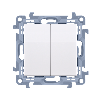 Simon 10 CP2.01/11 Ovladač zapínací 2 násobný (přístroj s krytem), bez piktogramu, řazení 1/0+1/0, 10 A / 250 V~, šroubové svorky bílá