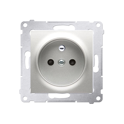 Simon 54 DGZ1Z.01/43 Zásuvka 1 násobná, s uzemněním, se clonkami (přístroj s krytem), šroubové svorky stříbrná metalizovaná