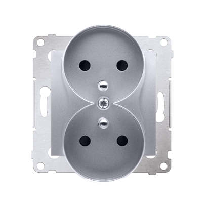 Simon 54 DGZ2MZ.01/43 Zásuvka 2 násobná (přístroj s krytem), se clonkami, pro rámečky Premium stříbrná metalizovaná