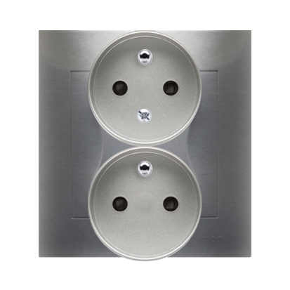 Simon 54 DGZ2TZ/43 Zásuvka 2 násobná (přístroj s krytem), s uzemněním, se clonkami, s funkcí neměnnosti fází, šroubové svorky stříbrná metalizovaná