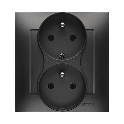 Simon 54 DGZ2TZ/49 Zásuvka 2 násobná (přístroj s krytem), s uzemněním, se clonkami, s funkcí neměnnosti fází, šroubové svorky černá matná metalizovaná
