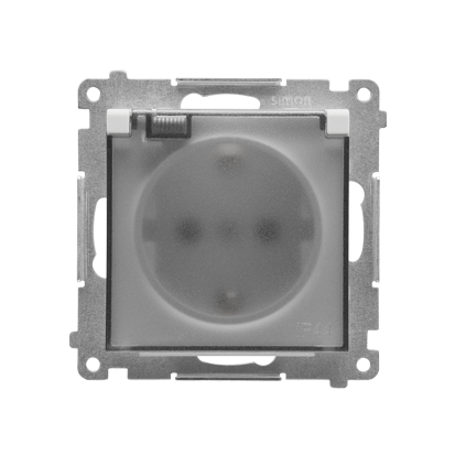 Simon 55 TGSZ1BCZ.01/114A Zásuvka Schuko 1 násobná (přístroj s krytem), IP44 s uzemněním, se clonkami, s těsněním rámečku, víčko transparentní, 16 A / 250 V~, bezšroubové svorky světle šedá matná