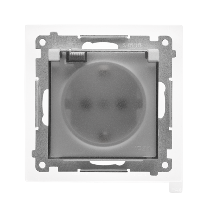 Simon 55 TGSZ1BCZ.01/143A Zásuvka Schuko 1 násobná (přístroj s krytem), IP44 s uzemněním, se clonkami, s těsněním rámečku, víčko transparentní, 16 A / 250 V~, bezšroubové svorky hliníková matná