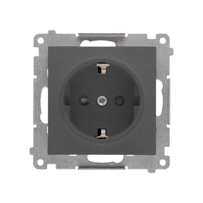 Simon 55 TGSZ1CZ.01/116 Zásuvka Schuko 1 násobná (přístroj s krytem), se clonkami, 16 A / 250 V~, bezšroubové svorky grafitová matná