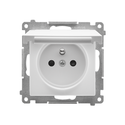 Simon 55 TGZ1BCUZ.01/111 Zásuvka 1 násobná (přístroj s krytem), IP44, bez těsnění, víčko v barvě krytu,16 A / 250 V~, bezšroubové svorky bílá matná