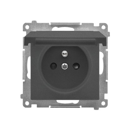 Simon 55 TGZ1BCUZ.01/116 Zásuvka 1 násobná (přístroj s krytem), IP44, bez těsnění, víčko v barvě krytu,16 A / 250 V~, bezšroubové svorky grafitová matná