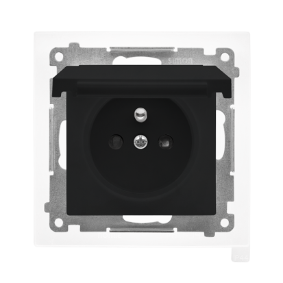 Simon 55 TGZ1BCUZ.01/149 Zásuvka 1 násobná (přístroj s krytem), IP44, bez těsnění, víčko v barvě krytu,16 A / 250 V~, bezšroubové svorky černá matná