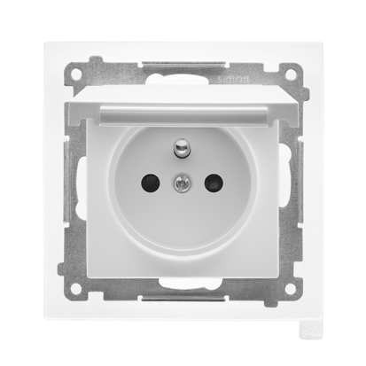 Simon 55 TGZ1BCZ.01/114 Zásuvka 1 násobná (přístroj s krytem), IP44 s uzemněním, se clonkami, s těsněním rámečku, víčko v barvě krytu, 16 A / 250 V~, bezšroubové svorky světle šedá matná