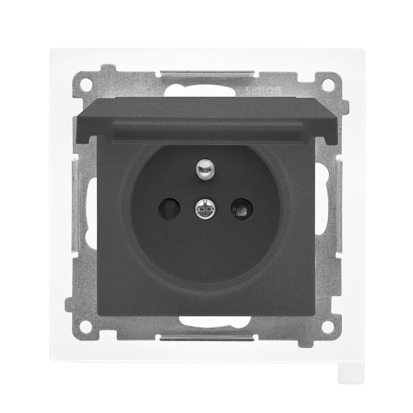 Simon 55 TGZ1BCZ.01/116 Zásuvka 1 násobná (přístroj s krytem), IP44 s uzemněním, se clonkami, s těsněním rámečku, víčko v barvě krytu, 16 A / 250 V~, bezšroubové svorky grafitová matná