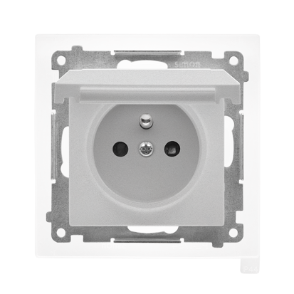 Simon 55 TGZ1BCZ.01/143 Zásuvka 1 násobná (přístroj s krytem), IP44 s uzemněním, se clonkami, s těsněním rámečku, víčko v barvě krytu, 16 A / 250 V~, bezšroubové svorky hliníková matná