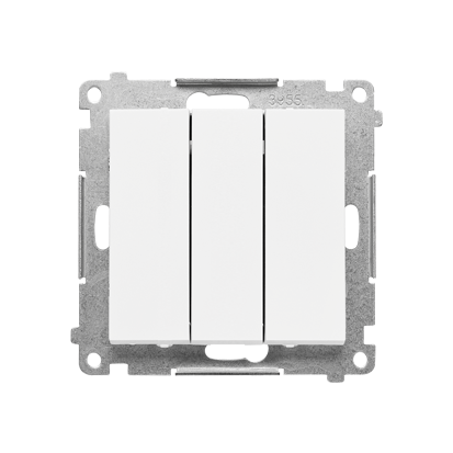 Simon 55 TP31.01/111 Ovladač zapínací 3 násobný (přístroj se 3 kryty), řazení 1/0+1/0+1/0, 10 A / 250 V~, bezšroubové svorky bílá matná