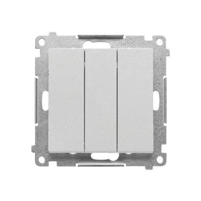 Simon 55 TP31.01/143 Ovladač zapínací 3 násobný (přístroj se 3 kryty), řazení 1/0+1/0+1/0, 10 A / 250 V~, bezšroubové svorky hliníková matná
