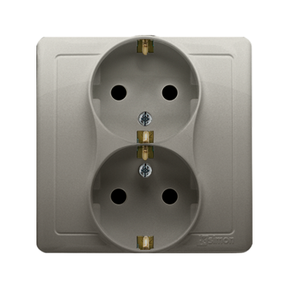 Simon Basic BGSZ2/29 Zásuvka Schuko 2 násobná (přístroj s krytem), s uzemněním, 16 A / 250 V~, šroubové svorky saténová