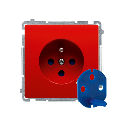 Simon Basic BMGD1.01/22 Zásuvka 1 násobná DATA s klíčem (přístroj s krytem), s uzemněním, 16 A / 250 V~, šroubové svorky červená
