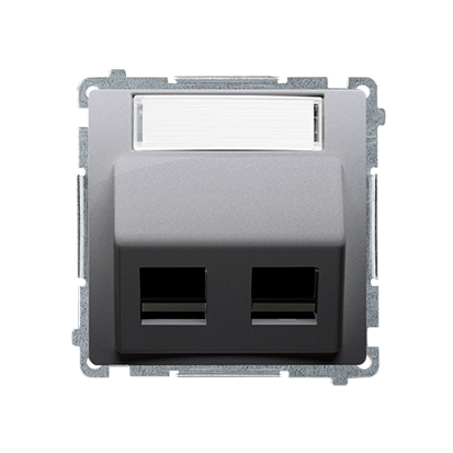 Simon Basic BMGKS2P.01/43 Kryt telefonní a datové zásuvky Keystone 2 násobný (přístroj s krytem), zkosený, s popisným polem stříbrná