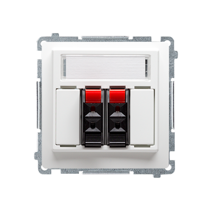 Simon Basic BMGL3.01/11 Zásuvka reproduktorová 2 násobná (přístroj s krytem), s popisným polem bílá