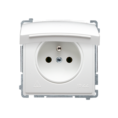 Simon Basic BMGZ1B.01/11 Zásuvka 1 násobná (přístroj s krytem), s uzemněním, IP44, víčko v barvě krytu, 16 A / 250 V~, šroubové svorky bílá