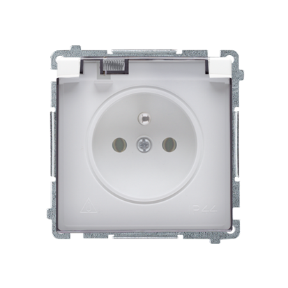 Simon Basic BMGZ1B.01/11A Zásuvka 1 násobná (přístroj s krytem), s uzemněním, IP44, průhledné víčko, 16 A / 250 V~, šroubové svorky bílá