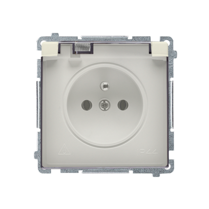 Simon Basic BMGZ1B.01/12A Zásuvka 1 násobná (přístroj s krytem), s uzemněním, IP44, průhledné víčko, 16 A / 250 V~, šroubové svorky béžová
