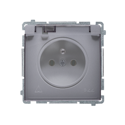 Simon Basic BMGZ1B.01/43A Zásuvka 1 násobná (přístroj s krytem), s uzemněním, IP44, průhledné víčko, 16 A / 250 V~, šroubové svorky stříbrná