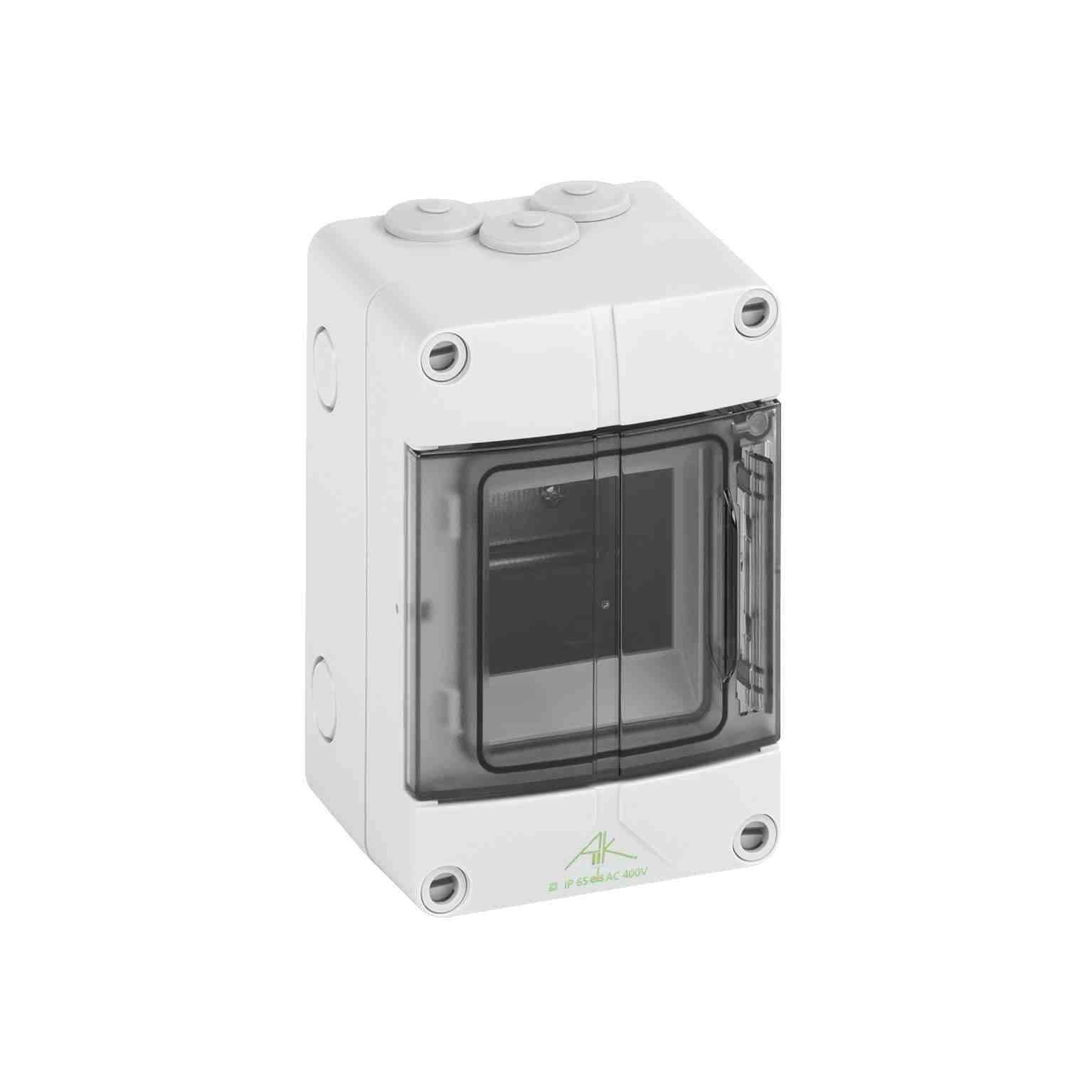 Malý rozvaděč, se stupněm krytí IP65, 1 Řada, 3 Dostupné moduly, Domezovací provozní napětí: 400V AC, nahoře a dole metrické předlisy pro univerzální vstup vodičů se šroubením a / nebo dvojitými membránovými vývodkami, nahoře s předmontovanými pružnými průchodkami DMS M20, s upínací lištou PE/N vždy s 1 místem upnutí 16 mm? a 3 místy upnutí 6 mm? Rozměry: 100 x 150 x 96 mm Přiložené příslušenství: Dvojitá membránová vývodka: 1x M25, Zaslepovací zátky, Krycí a popisovací pásky
